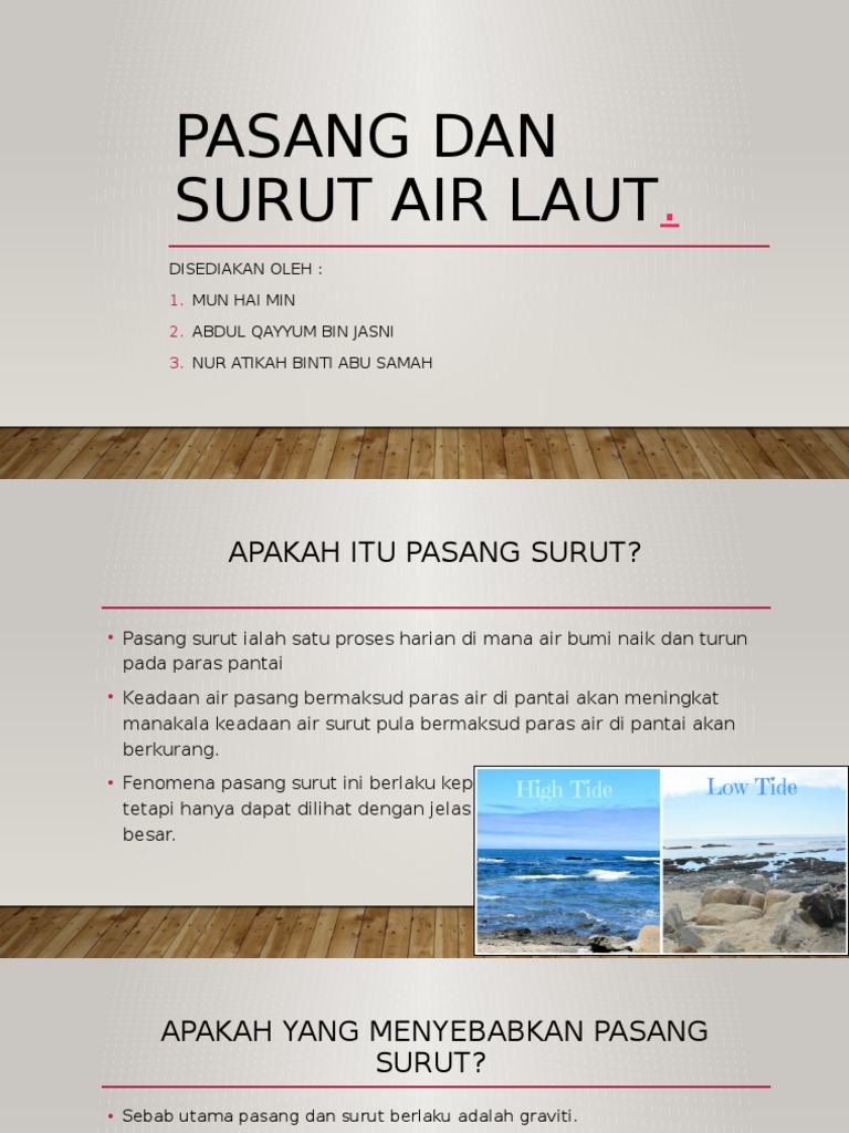 Laman Utama - JUPEM. Pasang Surut Air Laut ialah peristiwa perubahan tinggi rendahnya permukaan laut yang dipengaruhi dari gaya gravitasi benda-benda astronomi terutama pada matahari dan bulan. 12 Beds 2 Bath.